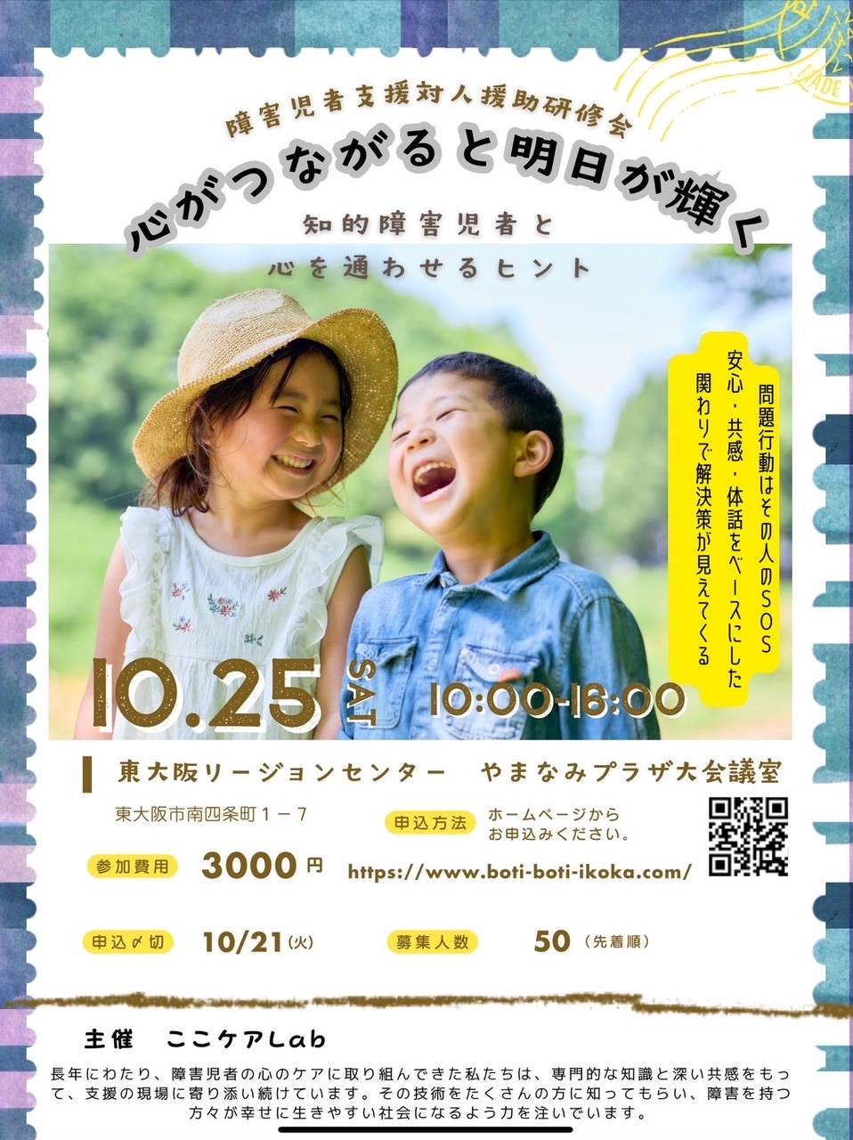 この「ここケアLab」は、障害児者が社会からも理解され幸せになるために、この「障害児者心のケア」を普及する活動を行っていきます。